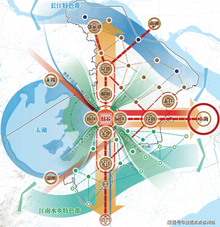 回顾苏州过去20年的发展,主要依靠东西向的沪宁发展轴作为城市主动脉。然而,随着城市的发展,东西向的沪宁发展轴已经趋于饱和。现在,苏州的发展重点正转向南北向的通苏嘉甬发展轴,寻求新的发展空间。这一战略转变,为相城区带来了前所未有的发展机遇。