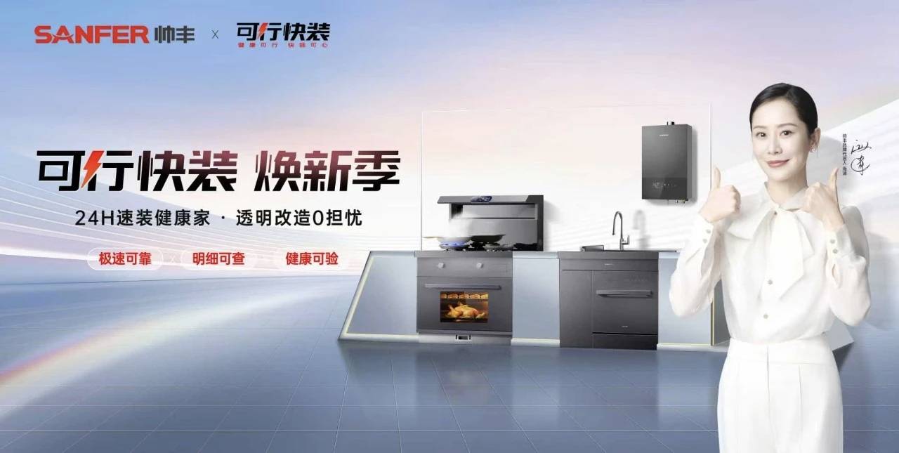帅丰的路径则更偏向于“快”和“体验”。围绕旧改需求,帅丰推出“可行·快装”以旧换新模式,以“极速、透明、健康”为服务标准,重构厨电焕新流程。