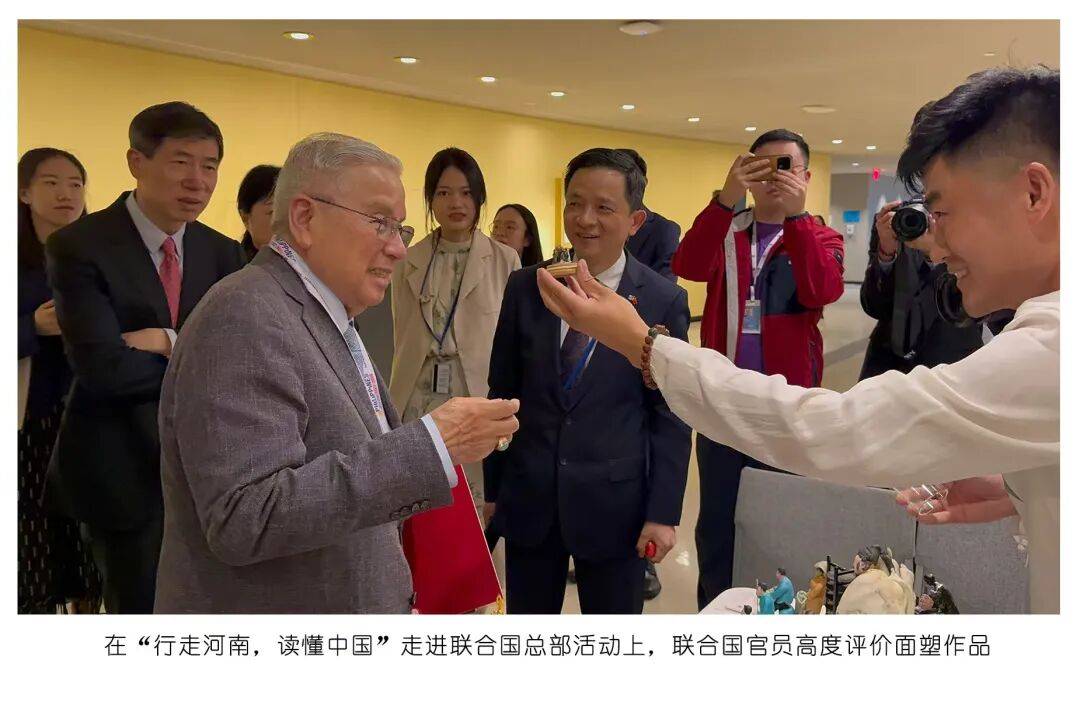 多年来,他多次代表中国、代表河南出访海外:在美国联合国总部,他现场捏制“熊猫”“京剧脸谱”,让外国友人惊叹“中国面团里藏着大智慧”;在肯尼亚联合国总部,他结合当地文化,创作融合非洲图腾与中国面塑技法的《中非友好》,传递友谊;在日本、澳大利亚、卢森堡等十多个国家,他举办面塑作品展、开展技艺交流,还将面塑作品作为文化礼品赠予外国政要、文化界人士,让更多人通过面塑认识中国传统文化、了解中原大地。