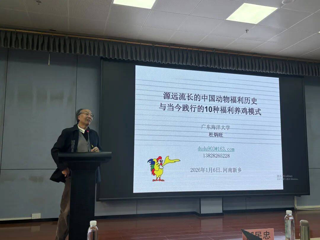 广东海洋大学二级教授,国务院特殊津贴专家,国家特种经济动物科技创新联盟副理事长,中国优质禽育种与生产研究会副理事长,《中国福利养鸡》作者杜柄旺教授分别做了主题为《源远流长的中国动物福利历史与当今践行的10种福利养鸡模式》和《我国特禽养殖概况与振兴思路》。通过回顾中国动物福利的历史,让大家认识到动物福利的理念并非是现代化养殖的附属,而是源远流长的文化传承。这有助于提升与会者对动物福利的认知和重视。报告揭示了如何在实际养殖中实施动物福利的具体模式,为养殖业者提供了实用的技术指导和创新思路,推动行业向绿色、可持续发展转型,促进养殖技术的升级。杜教授还分析了特禽养殖的现状以及未来的振兴策略,这不仅为行业从业者提供了市场分析和前瞻性思考,也帮助行业应对不断变化的市场需求,支持他们在竞争中保持优势。