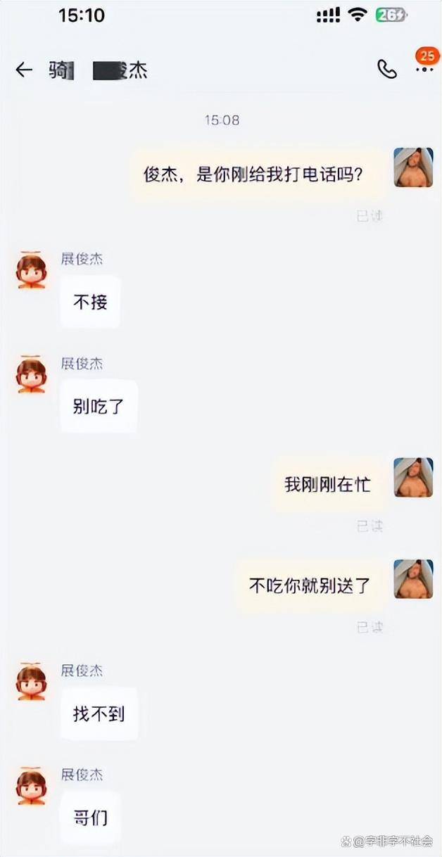 他在消息里跟小哥解释,自己刚才一直在忙着洗头,不是故意不接电话,可转念一想,小哥语气这么冲,自己也咽不下这口气,于是就跟小哥说:“你别送了,我不吃了。”