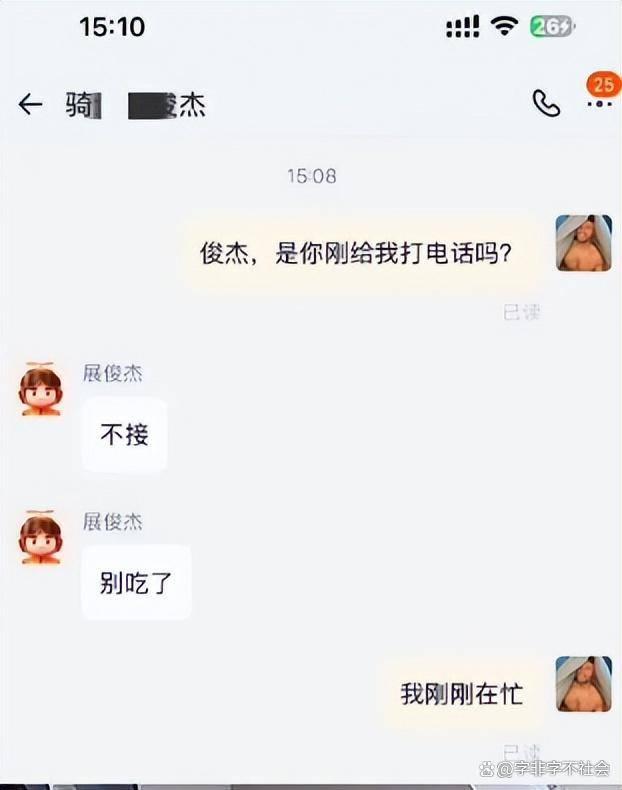 理发师不确定这个未接来电是不是外卖小哥的,于是在平台上给小哥发消息询问,可没想到,小哥回复的语气格外冲:“不接电话,就别吃了。”