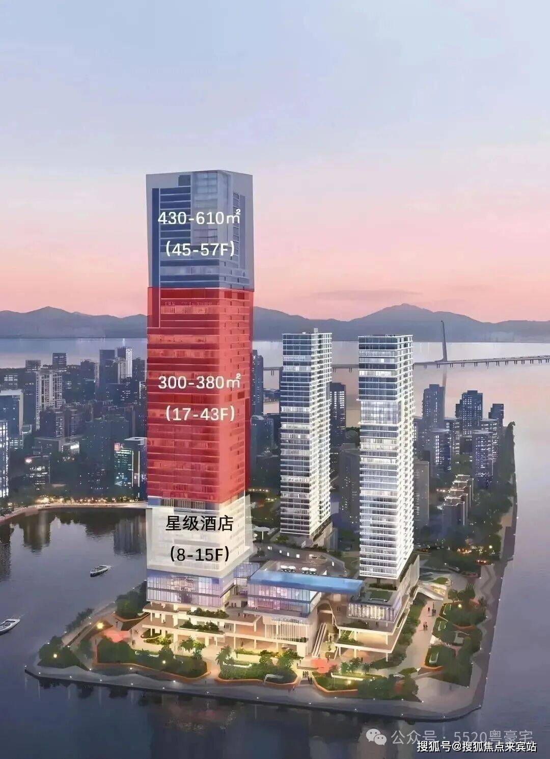 500-700㎡超大户型:700㎡户型位于1栋一、二单元高区33-38层,由01+02户型组成。户型宽敞奢华,可尽享海景与城市景观,为高端客户提供极致居住体验。