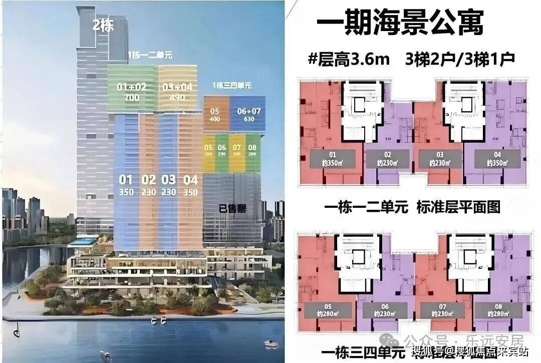 280㎡三房两厅四卫:位于1栋三、四单元24-32层,为05、08户型。拥有超8米超宽幕开间,厅出阳台可直面海景。采用三套房设计,主卧配备L形全景落地窗,占据270°最佳观海位。