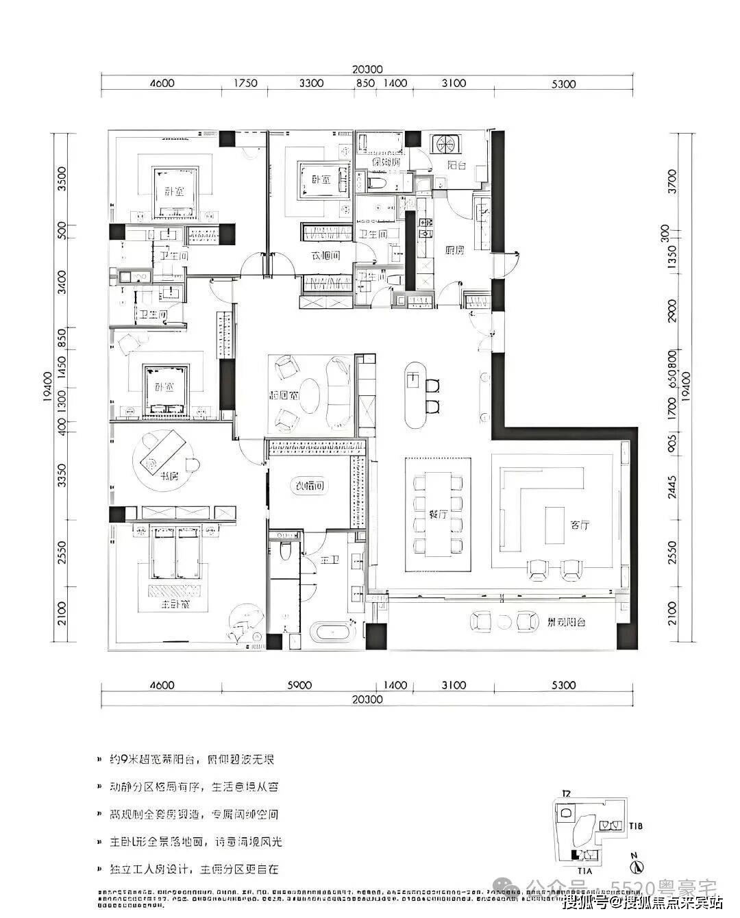 468㎡五房三厅六卫:位于1栋一、二单元高区33-38层,一层一户,仅6席。五房四套房设计,主卧L形全景落地窗,270°最佳观海位,南向超大三厅一体,动静分区布局有序。