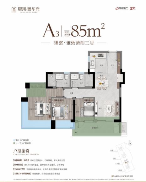 在房地产领域,户型是产品的灵魂,直接关系到居住的舒适度和空间的利用率。星河臻华府紧跟2026年建筑新规,匠心打磨出了一系列“神户型”,以接近100%的使用率、全南向的布局和人性化的细节设计,刷新了市场对好房子的认知标准。目前在售户型涵盖85-125㎡的三至四房,均为精装修交付,适配不同家庭结构的多元化需求。