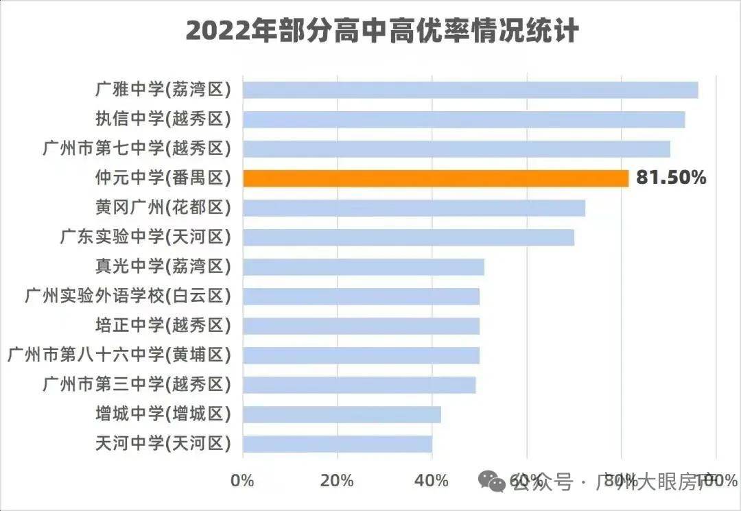 聚焦2022年最新数据,仲元中学的高优率已经达到了81.5%,600分以上考生接近200人,遥遥领先于其他常出现在广州家长口中的学校。