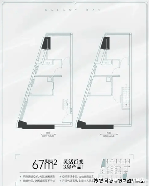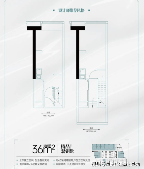 最后是建面约36-74㎡临江LOFT产品,4.5米层高可做分层设计,部分为双钥匙格局,空间利用率更高,适配多种居住或使用场景。LOFT产品最大的优势就是空间利用率高,4.5米的层高,可分为上下两层,一层作为客厅、厨房、卫生间,二层作为卧室,空间布局灵活,能够满足不同的使用需求——可以作为自住,一层休闲、二层休息,空间充足;也可以作为办公+居住,一层办公、二层休息,兼顾工作和生活;还可以作为投资,双钥匙格局可分开出租,获得更高的投资回报率。临江的设计,让LOFT产品也能享受江景资源,提升居住和使用的舒适度。