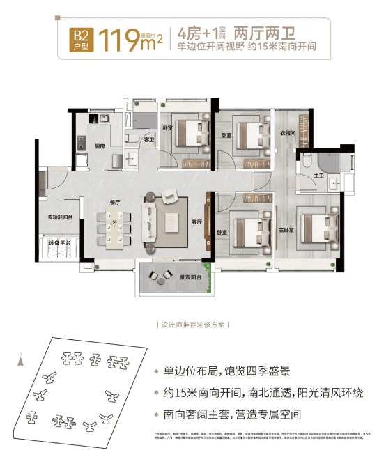 119㎡4+1房:改善入门,低总价实现天河换房,适合家庭人口较多的刚改家庭,咨询量持续攀升;