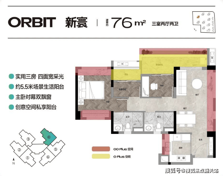 如果说74㎡户型是年轻夫妻的入门之选,那么76㎡三房两卫户型则是三口之家的理想归宿。这款户型在设计上与74㎡版本相似,但在某些细节上做了进一步优化,使其空间利用率达到了令人惊叹的程度。部分房源经过巧妙改造后,实际使用率甚至可以达到95%,几乎做到了“零浪费”。