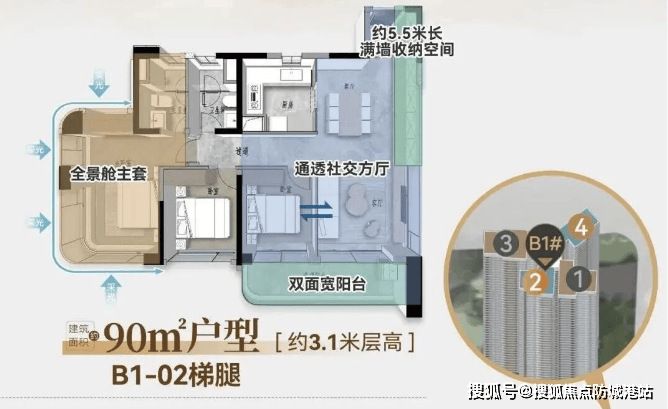 得房率是指套内建筑面积与销售面积的比率。传统高层住宅得房率通常在75%-78%左右,而保利天曜通过创新设计,将部分面积“赠送”或“拓展”,使得实际使用率远超100%。