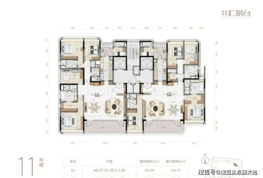 11栋的232-240平方米四房三卫是市场公认的热门改善户型,实用率高达83%。全南向设计,确保每个房间都能享受到充足阳光,恒适系统的配备让室内温度维持在20-26℃,湿度保持在40%-70%,能有效应对广州的回南天和极端天气。