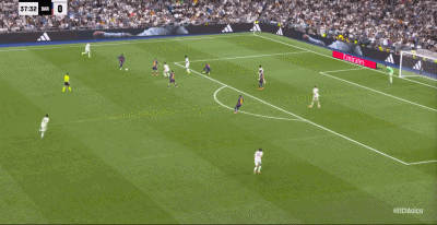第38分钟,巴萨追平比分,拉什福德助攻,费尔明破门得分,双方回到同一起跑线分钟,维尼修斯突破下底传中到后点,米利唐头球摆渡到门前,贝林厄姆包抄推射得分,再次超出比分。