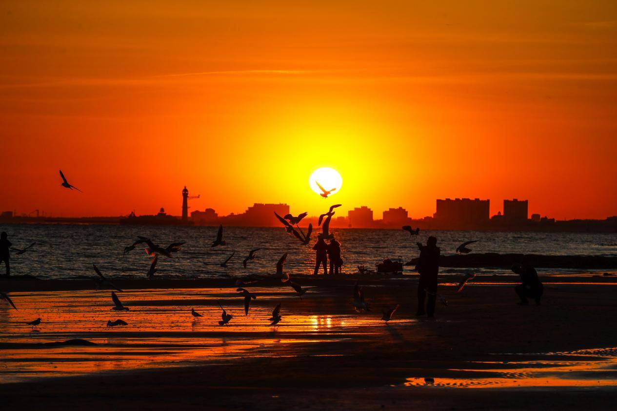 来自东北、北京、天津等地的游客自驾到秦皇岛北戴河鸽子窝公园看日出、到老虎石公园追日落。冻海不冰,秦皇岛冬日旅游“热”力全开。