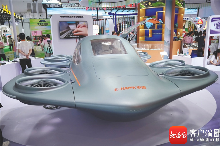 4月13日,电鹰科技研发的电鹰飞车亮相消博会。海南日报全媒体记者 王程龙 摄