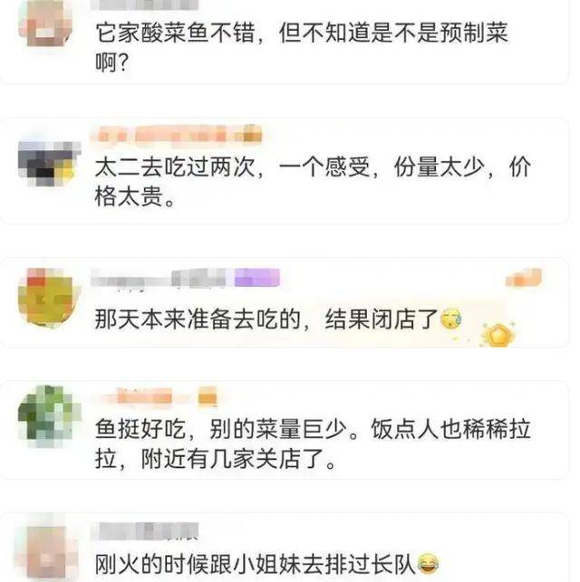 这时候菜品份量少得可怜(一份鱼只有十来片)、鱼肉品质下降(口感发柴、容易碎裂)等问题就变得愈发无法容忍,门口曾经的长队不见了,社交媒体上的风评也开始逆转。
